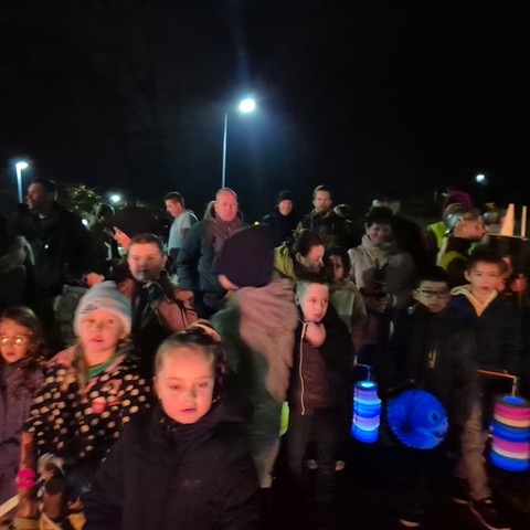 De vele lichtjes vormden een prachtige lange sliert door de wijk, gedragen door de verbondenheid tussen kerk, buurt en scouting.