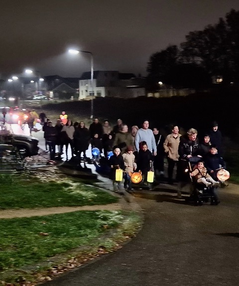 Na de vertelling, trok een grote lampionnenstoet met kinderen, ouders, buurtbewoners én leden van Scouting St. Tarcisius door de straten van Nieuwenhagerheide.