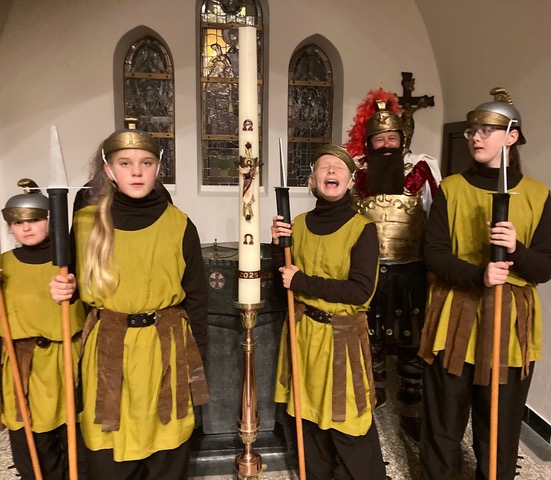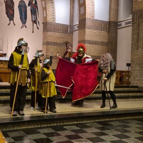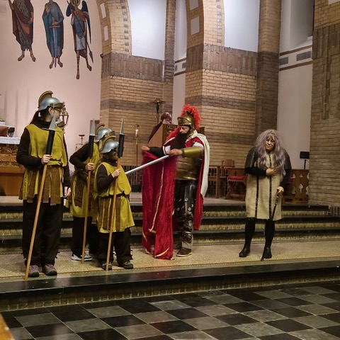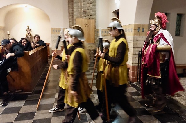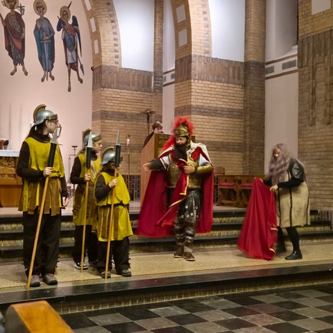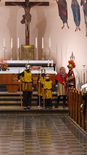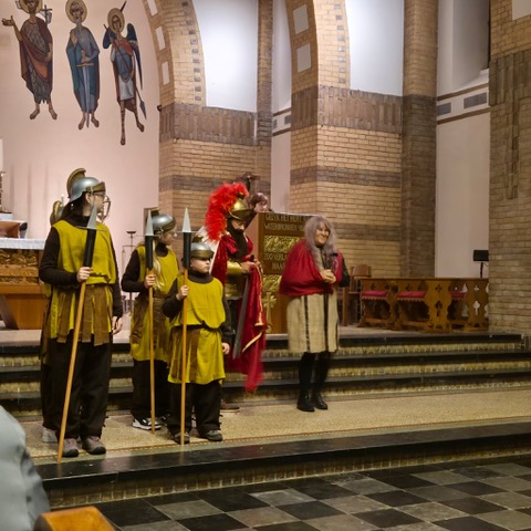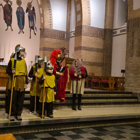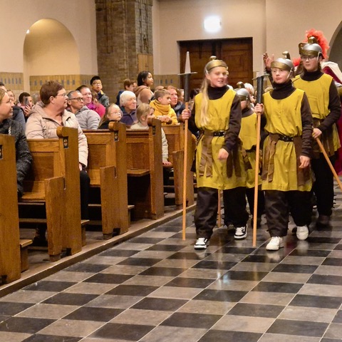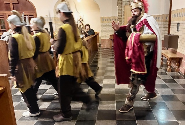 De avond begon in de Heilig Hart van Jezuskerk, waar de Parochiefederatie Schaesberg, Nieuwenhagen en Nieuwenhagerheide het eerste deel van het Sint-Maarten verhaal vertelden en uitbeeldde. De kinderen luisterden aandachtig terwijl hun lampionnen zachtjes mee oplichtten in de kerk.