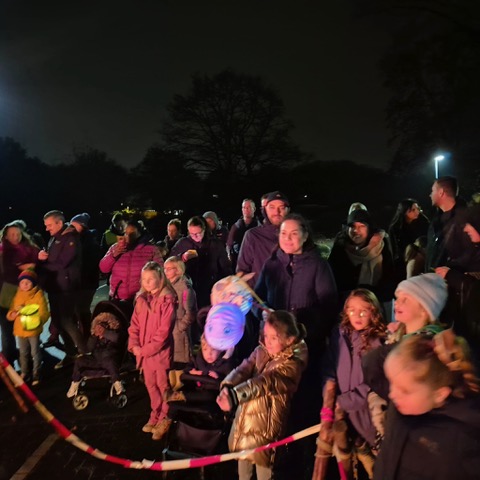 Samen liepen we richting de parkeerplaats aan de Puddelerweg en het Park aan de Kleikoeleweg, waar het Sint-Maarten vuur al brandde.