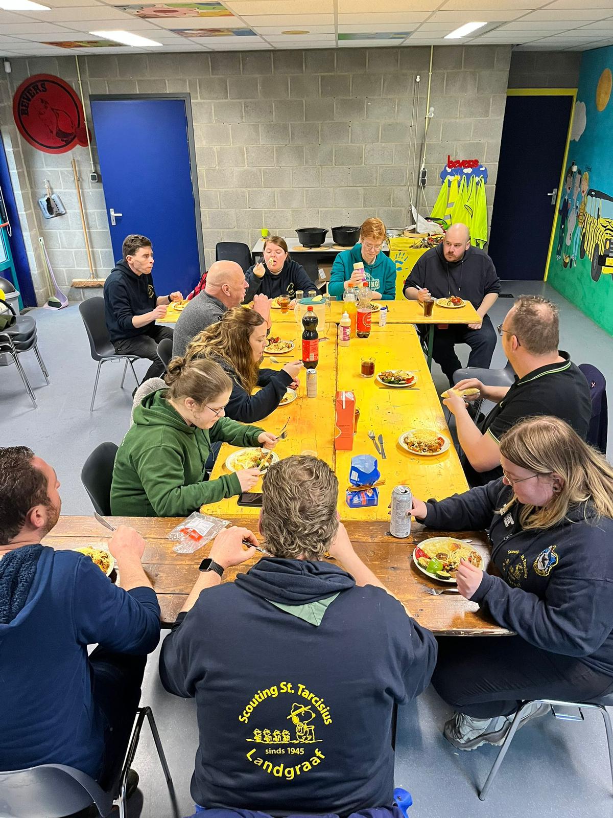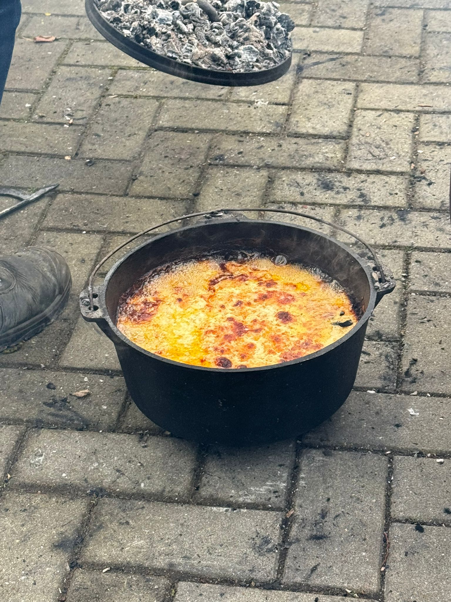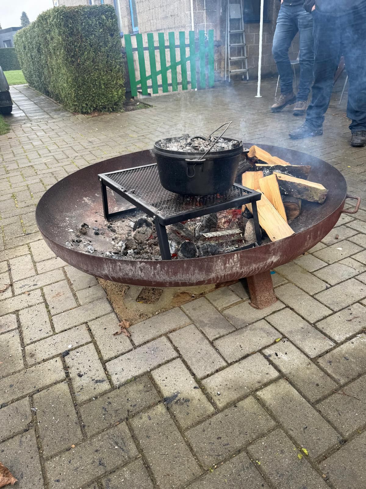 Vrijdagavond begonnen we met een fanatieke en gezellige pubquiz 🧠🎉. Op zaterdag doken we het avontuur in tijdens de workshop koken op vuur, verzorgd door Scouting Limburg. Het was een actieve en inspirerende dag: samen vuur maken, koken en natuurlijk genieten van alles wat we zelf hebben bereid 🔥🍲. Met nieuwe tips en tricks over vuur maken gingen we voldaan verder!