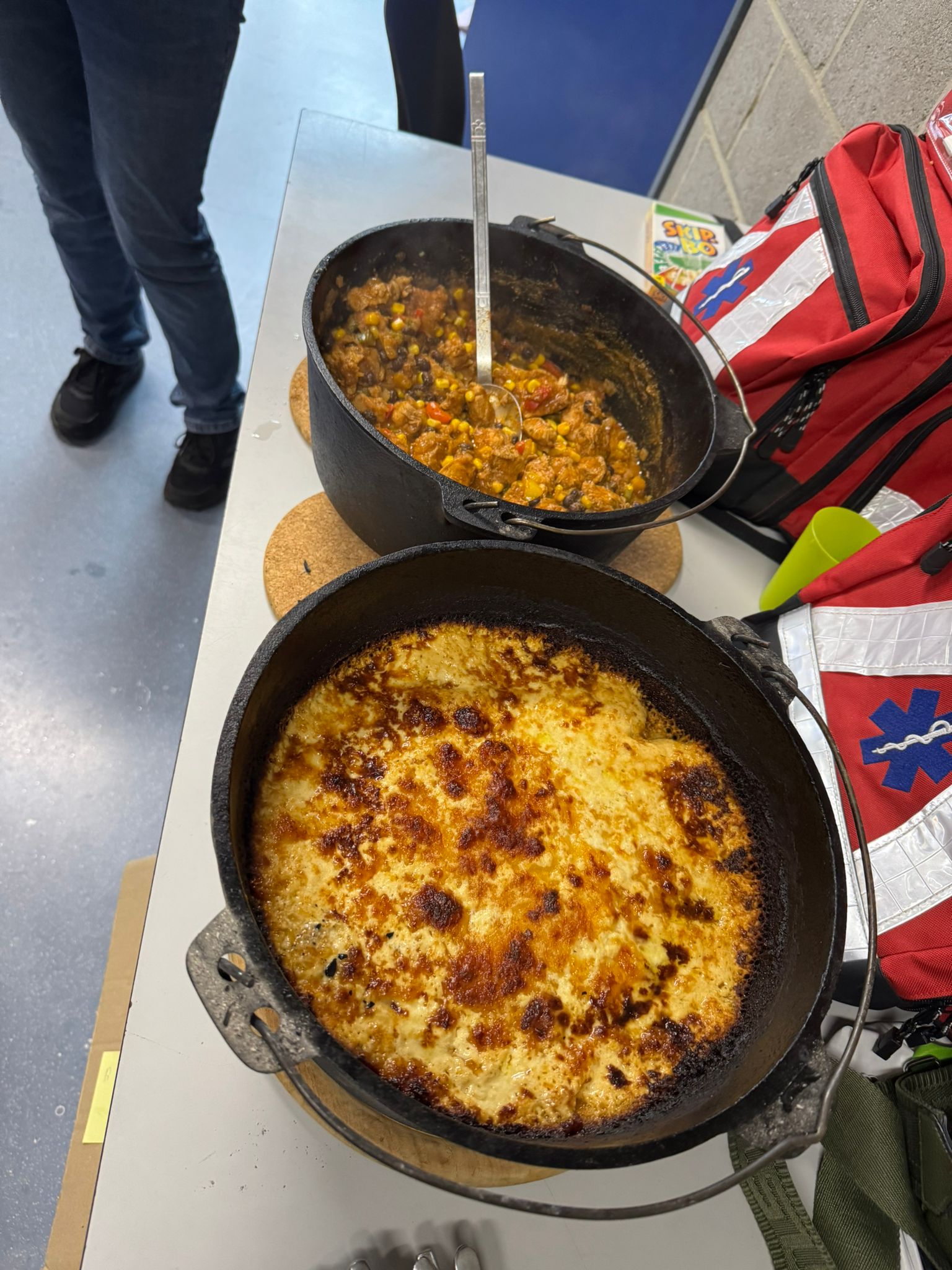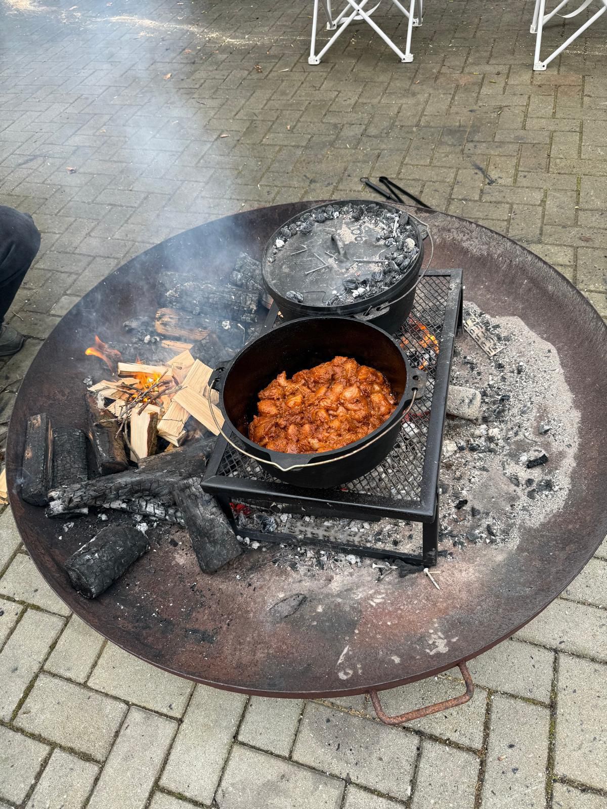Vrijdagavond begonnen we met een fanatieke en gezellige pubquiz 🧠🎉. Op zaterdag doken we het avontuur in tijdens de workshop koken op vuur, verzorgd door Scouting Limburg. Het was een actieve en inspirerende dag: samen vuur maken, koken en natuurlijk genieten van alles wat we zelf hebben bereid 🔥🍲. Met nieuwe tips en tricks over vuur maken gingen we voldaan verder!